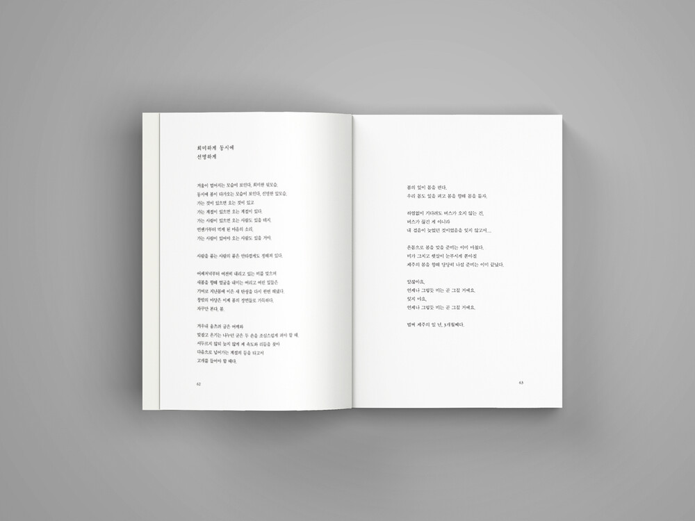 제주 봄, 생기 어린 희망의 풍경들과 대단치 않지만 그토록 원했던 일상에서의 순간과 일기와 질문, 틈틈이 쓴 짧은 글을 엮어 사계 연작의 두 번째 책이 되었다. 이 책 뒤로 순차적인 계절의 기록, 사계 연작의 여름 이야기, 가을 이야기가 잇따라 출간될 예정이다.