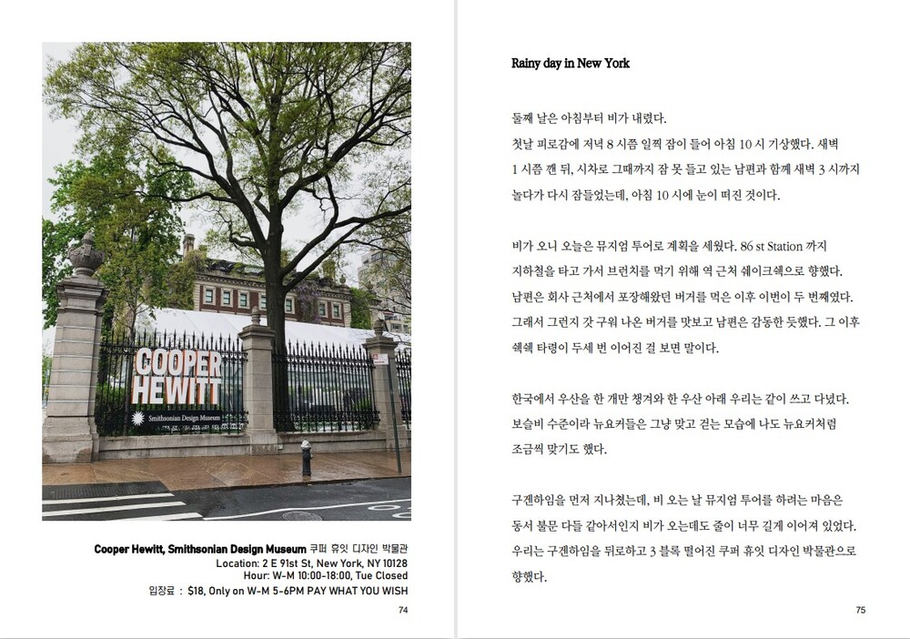 이 책은 일상을 예술처럼 살고 싶은 글 쓰는 아내와 디자이너 남편, 예술하는 부부의 첫 번째 프로젝트입니다. 2022년 5월 다녀온 뉴욕, 워싱턴 DC, 시카고 여행 중 뉴욕의 이야기만을 담았습니다. ‘Art and Museum’ 여행 컨셉대로 6일간 17개 미술관을 방문하며 예술의 도시 뉴욕을 경험한 이야기를 담았습니다.