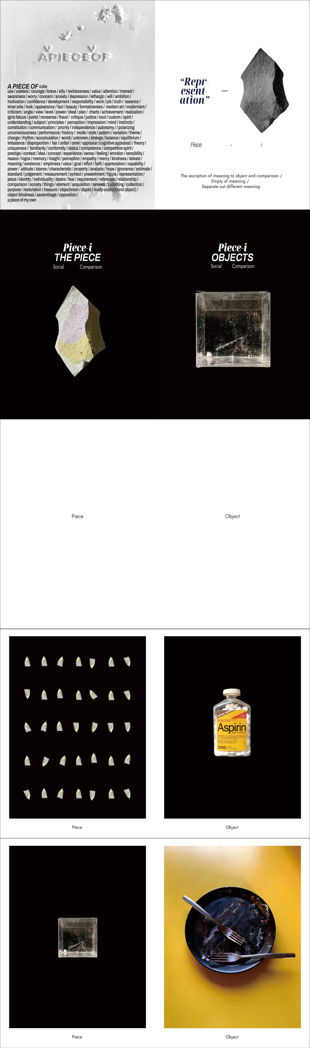 작가는 파편에서 연상되는 물건들을 찾아 직접 사진을 찍었다. 그리고 피스와 오브젝트를 병치시켜 나에 대한 표상과 타자에 대한 표상, 그리고 그 관계들에 대해서 표현하고자 했다.