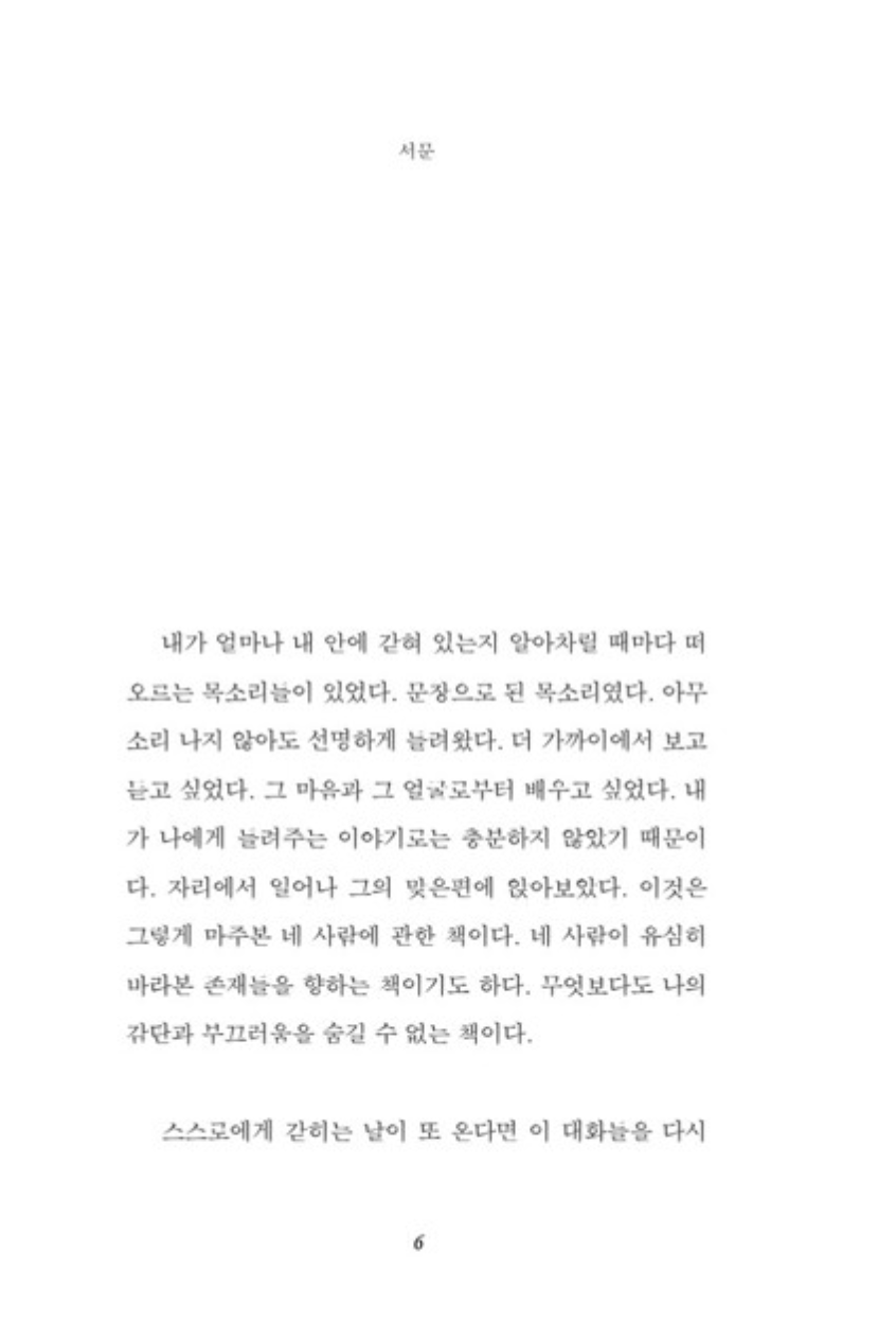 바로 그런 한 사람이 될 수 있을까. 누군가에게 내 얼굴이 그 얼굴일 수 있을까. 그러고 싶은데 내 언어로는 충분하지 않은 날도 있다. 그런 날에 나는 김한민의 책을 물한다. 사랑하는 이들에게. 내가 본 것을 너도 본다면 알수 있을 거야, 이전과 같을 수는 없을 거야, 우리 같이 좋 은 쪽으로 가자, 속으로만 말하며, 김한민의 힘을 빌려 사랑을 한다.
