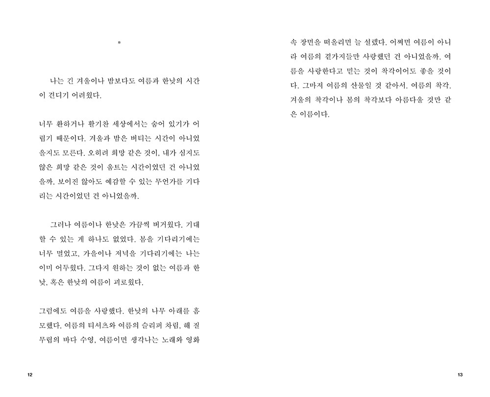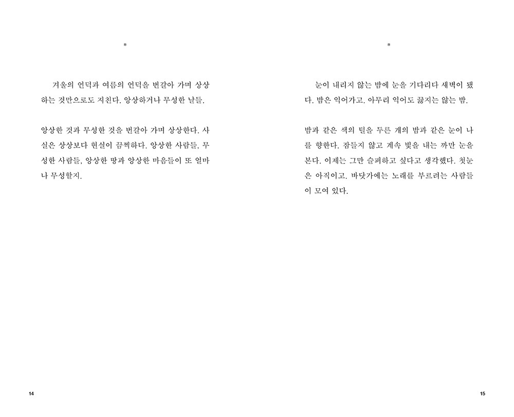 오래된 겨울은 모두 어느 방 안의 풍경으로 남아 있다. 큰 오동나무 장롱이 하나 둘 셋 들어가 있는 방. 작고 긴 방. 한 사람, 두 사람, 세 사람, 네 사람 누우면 꽉 차는 방. 그래도 가끔 두 사람 정도 더 눕는 방. 미닫이문이 달린 방. 겨울엔 추워서 커튼으로, 이불로 바람 들 구석을 꼭꼭 막고서도 이불 밑에 숨어서 자야 했던 방.