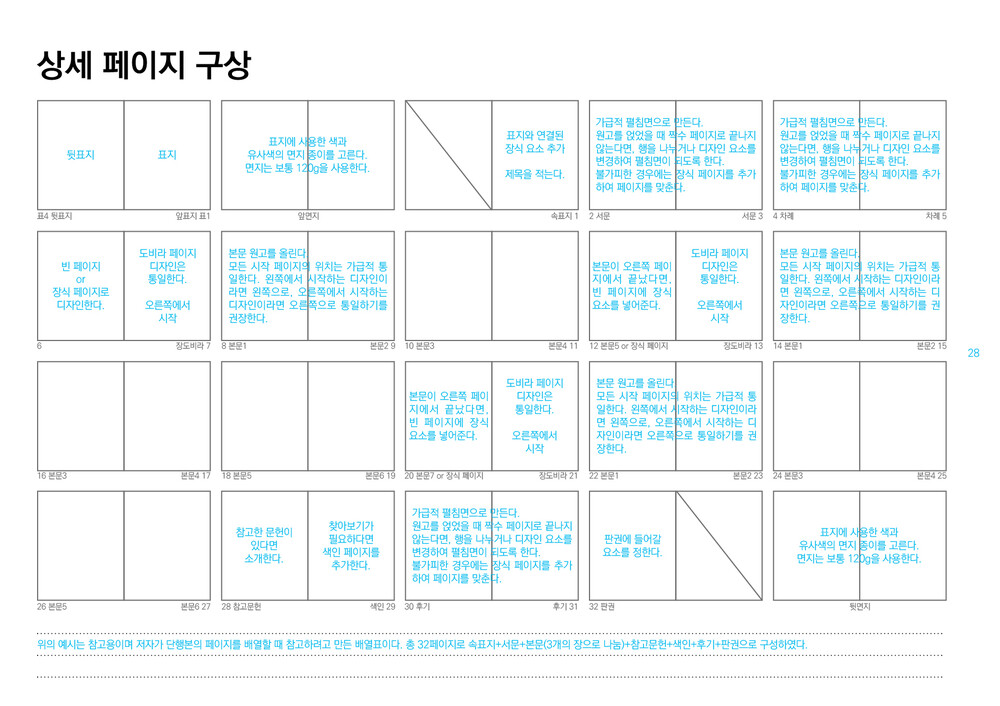 디자인_ 상세 페이지 구상 / 상세 페이지 기획 / 배열표 / 페이지 맞추기 / 판형 / 책등과 책날개 / 앞표지 / 책의 사양 / 표지 디자인 / 어떤 표지를 선택할 것인가? / 표지의 요소를 결정하자! / 표지 디자인을 스케치 해보자! / 러프 스케치 다듬기 / 무선날개표지 / 무선날개표지 뒷면 / 무선날개표지 띠지 / 무선날개표지 커버 / 무선표지(날개없음) / 무선표지 뒷면(날개없음) / 무선표지커버(날개없음) / 무선표지띠지(날개없음) / 중철표지 / 중철표지 뒷면 / 중철표지 커버 / 중철표지 띠지 / 본문 디자인 / 글책 / 그림책 / 만화책 / 사진 책 / 본문 디자인 구상하기 / 서체