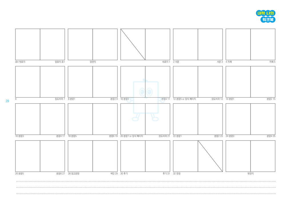 워크북을 따라하며 자신의 책을 구상할 수 있습니다.