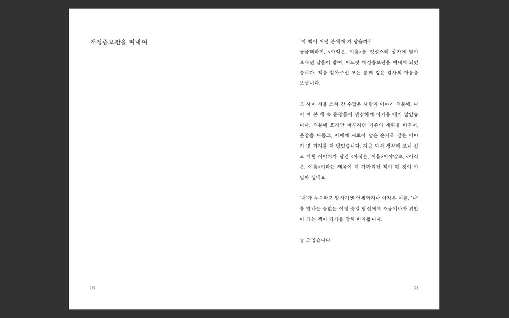아직은 이름 붙이기 어려운 이야기들이 새로이 깁고 더해져 엮이었습니다.