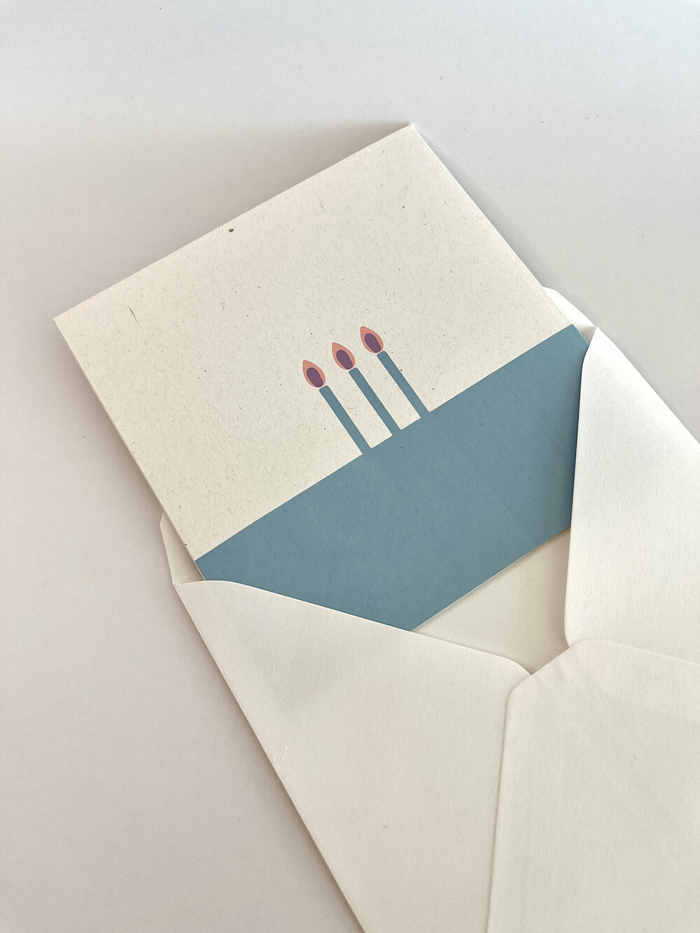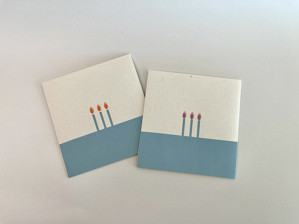실크스크린 기법으로 총 3도의 색으로 작업한 정사각형 모양의 카드입니다.