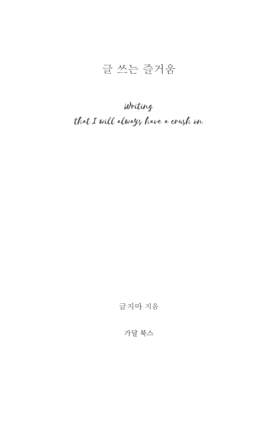 글지마 작가가 말하는 글쓰기란 ‘자아성찰의 씨앗’이다. 우리는 인생이 어딘가 불만족스러울 때 책상 앞에 앉는다. 만사를 제쳐두고 마음의 응어리를 털어놓고자 연필을 손에 쥔다. 그렇게 비워낸 가슴을 다시금 ‘할 수 있다’는 용기의 문장으로 채우기 위해 우리는 계속해서 글을 써야 한다고 저자는 말한다. 『글 쓰는 즐거움』은 독자로 하여금 ‘나도 글을 써보고 싶다’는 생각을 이끌어내며 다시 한 번 목표를 향해 나아가는 힘과 희망을 전해줄 것이다.