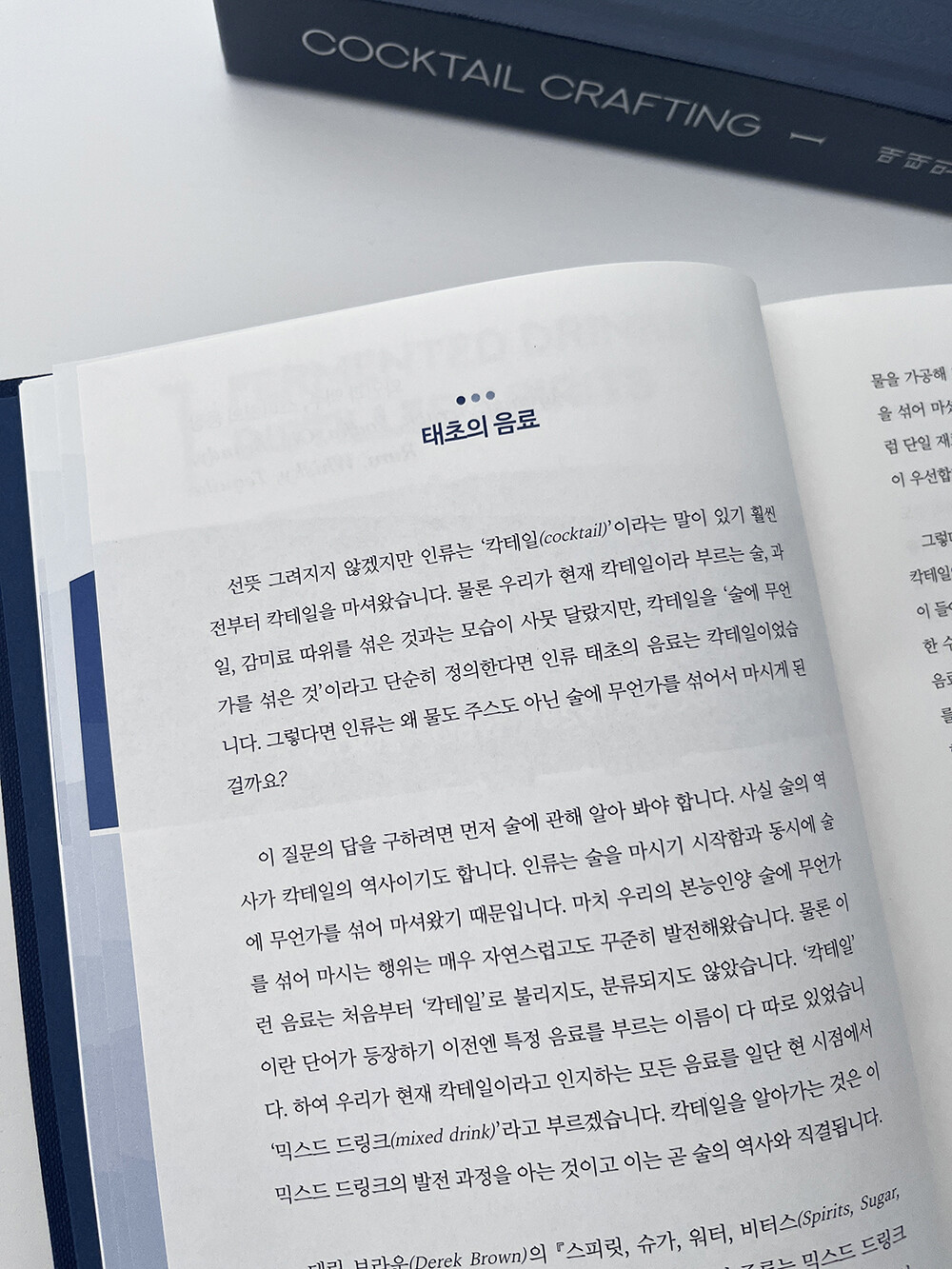 수백 년의 역사와 수십 권의 칵테일 서적, 수많은 실험과 고민을 한 권으로 정리한 책 <Cocktail Crafting - Basic & Classic>입니다.