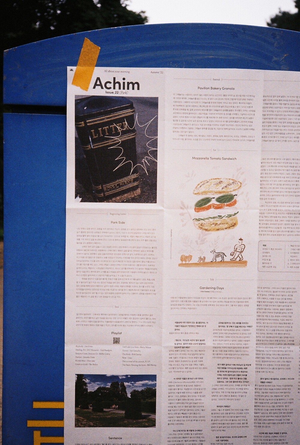 일 년에 네 번 발행되는 계간지입니다. 활짝 펼치면 신문과 같은 타블로이드 판형이며 매 호 각 주제에 맞는 사진을 담은 엽서 두세 장이 함께합니다. 아침을 바탕으로 매 호 다른 주제를 가지고 있습니다. 주제를 설명하는 비기닝 레터, 다른 사람의 아침을 간접적으로 경험해보는 인터뷰와 에세이, 유머 있게 풀어낸 시리얼 리뷰와 레시피, 아침에 보고 듣고 읽기 좋은 영감 콘텐츠로 구성되어 있습니다.