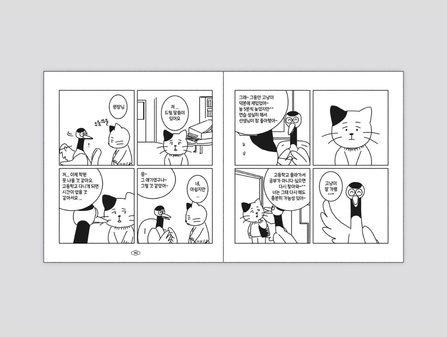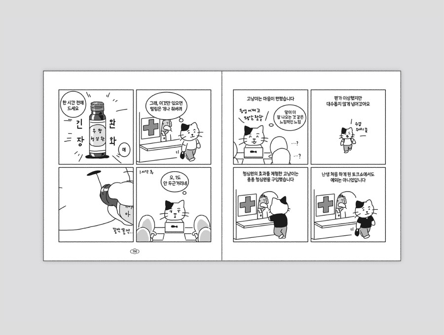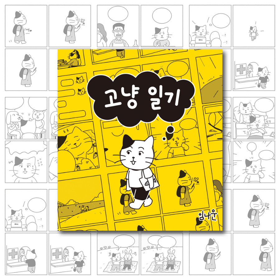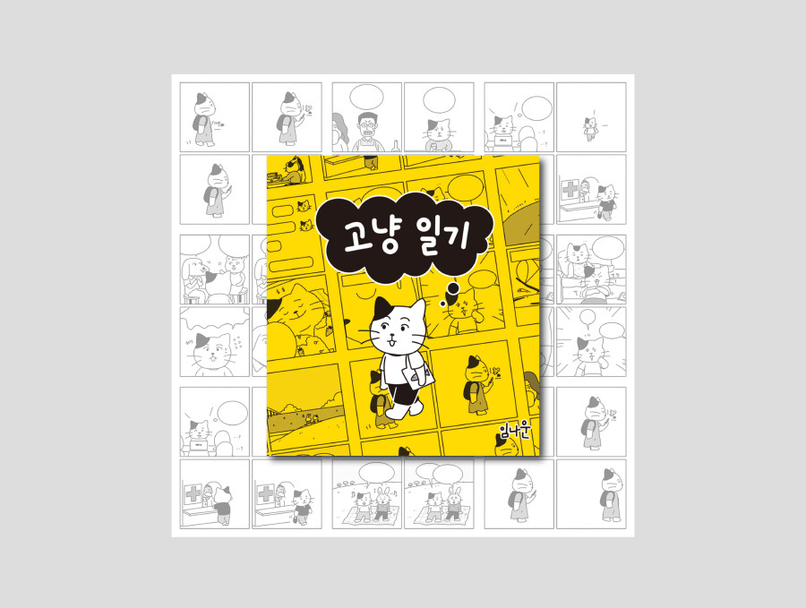 지금에야 웃으면서 볼 수 있지만, 그 당시엔 속상한 감정을 그대로 흘려보기에도 아쉬워서 ‘고냥이’로 그날의 일을 그렸어요. 그렇게 <고냥 일기>가 시작되었습니다. 그날 이후로 ‘고냥이’가 생각날 때마다 느릿느릿하게 그렸던 만화인데 그러다보니 이렇게 쌓이게 되었습니다.
