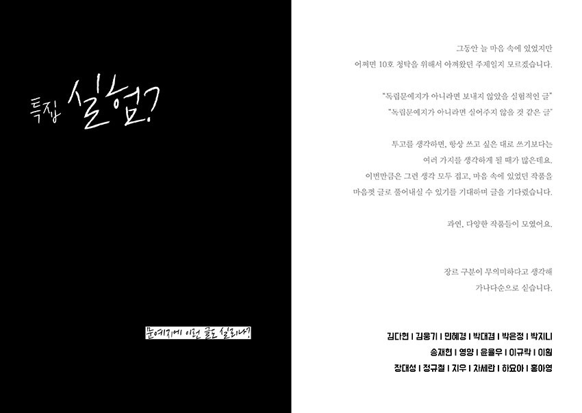 “독립문예지가 아니라면 보내지 않았을 가장 실험적인 글”