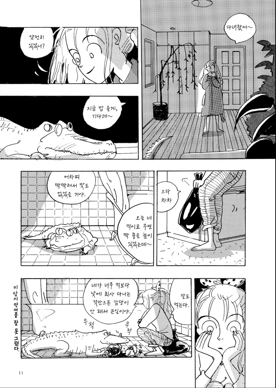 “오늘 네 먹이로 주면 딱 좋을 놈이 있었는데~ 어차피 딱딱해서 맛도 없었을 거야.”