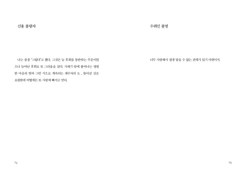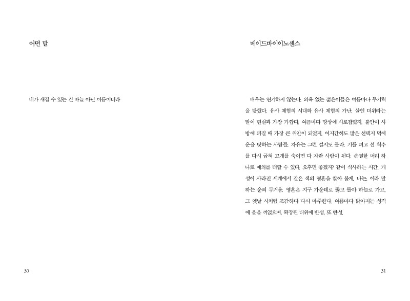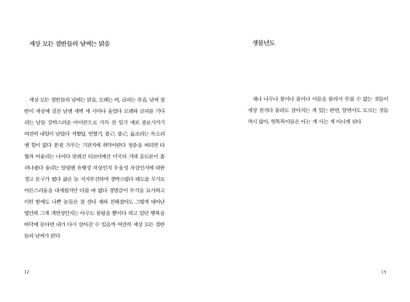 한편, 수렁에서 발견한 행운과 소외의 막다른 골목에서 만난 감정과 단어의 소중함에 대해 고백하며 오늘의 부끄러움이 내일의 불명예가 되지 않도록 반성합니다. 그러니까 <조와 울들>은 우리 생의 '조'와 '울'들을 목도하고 놓치지 않으려 노력한 결과입니다.