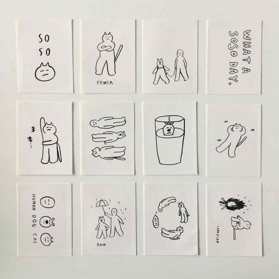 딱히 좋은것도, 싫은것도 없는 그저 그런 표정으로 그저 그렇게 살아가는 사람, 개, 고양이로 구성된 SOSO FAMILY