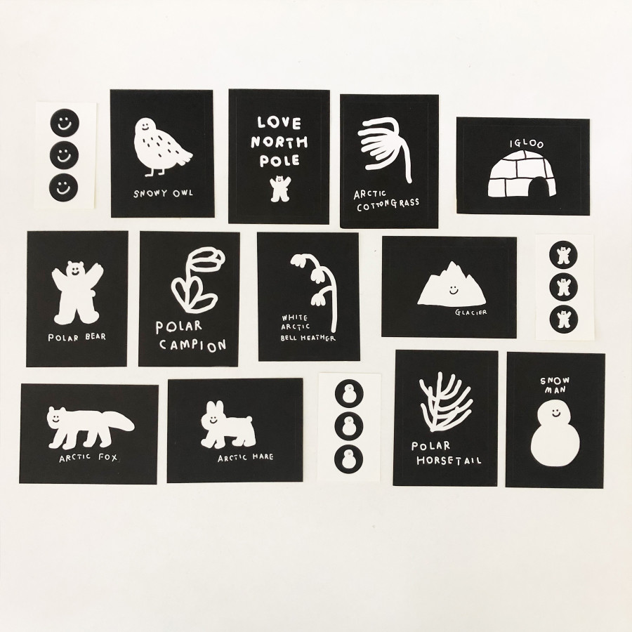 북극에 사는 친구들을 그래픽으로 표현한 스티커 시리즈