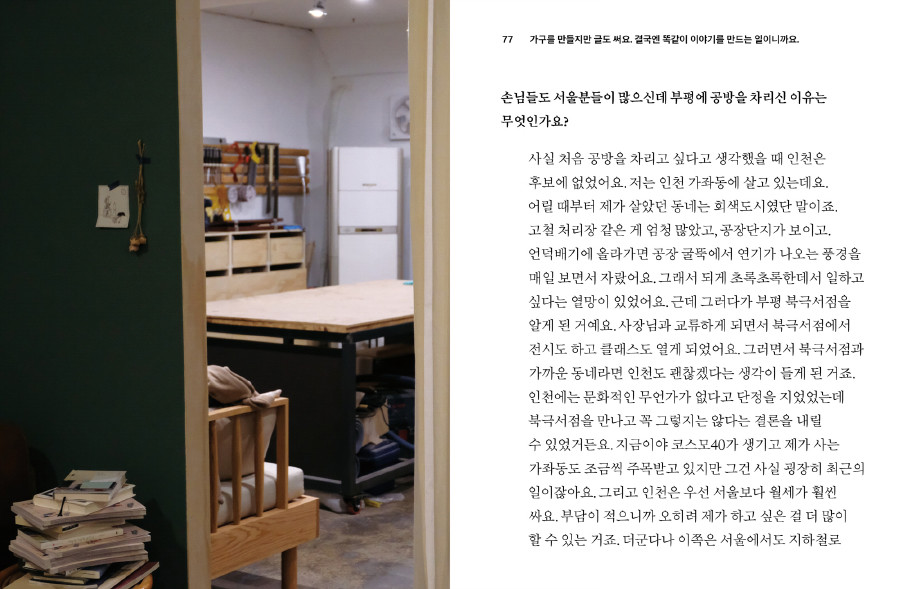 가구를 만들지만 글도 써요. 결국엔 똑같이 이야기를 만드는 일이니까요.