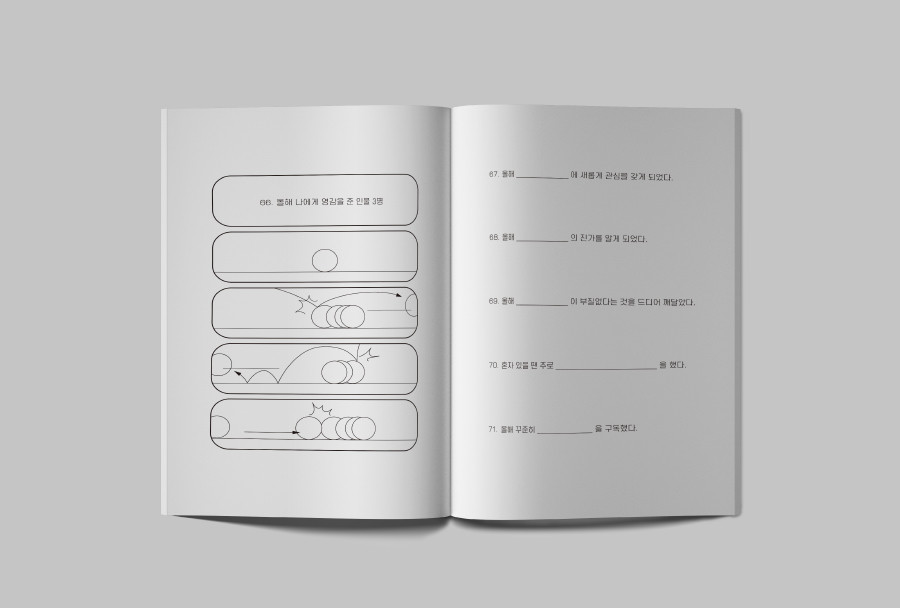 <연말정산>은 사람과의 관계, 감정, 새로움 등을 주제로 한 100가지의 질문들이 랜덤으로 들어가있습니다.