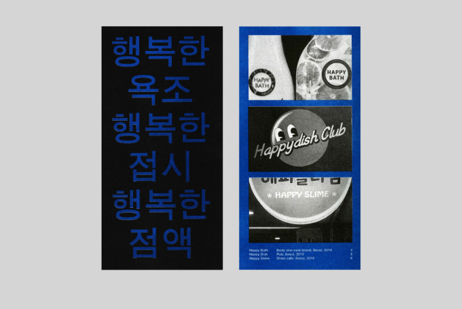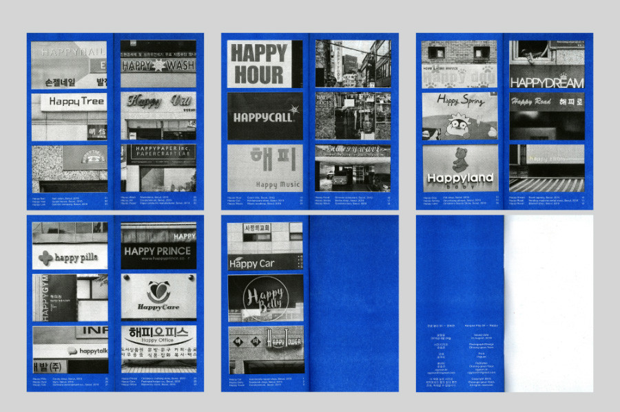 〈한글 놀이 04—행복한〉은 서울의 길거리에서 마주친 ‘happy’ 무언가를 모아 사진과 글로 엮은 책이다.