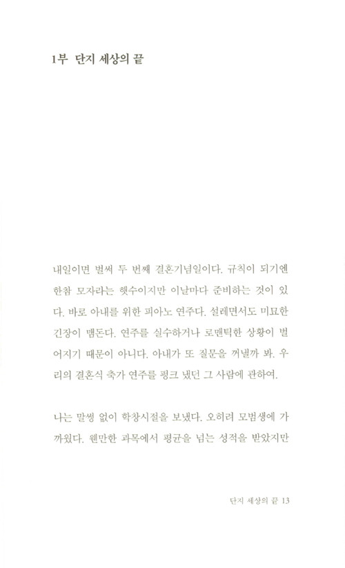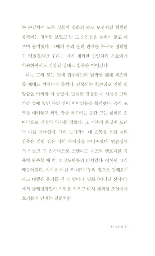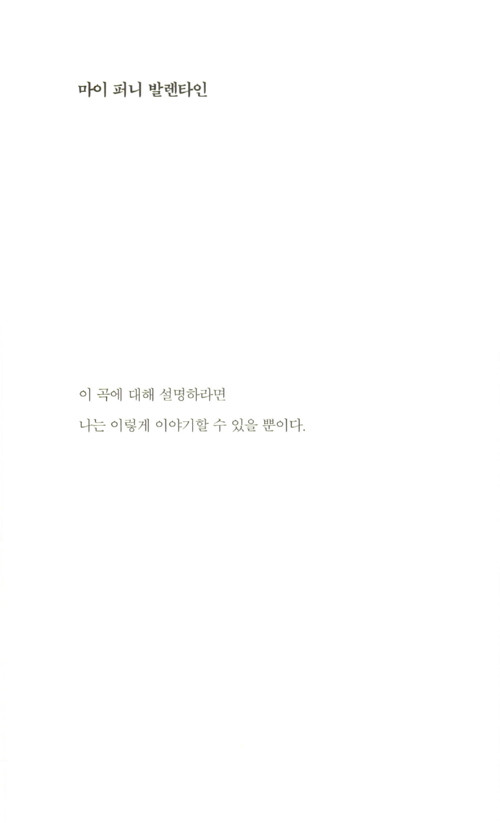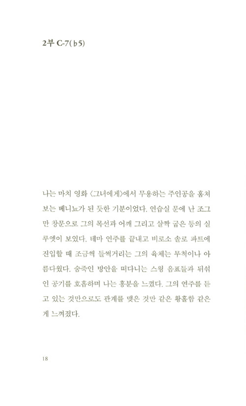 1부 ‘짧은 꿈’은 ‘마이 퍼니 발렌타인'이라는 재즈 스탠다드 넘버에 작가만의 고유한 상상력을 더해 완성한 이야기입니다. 1부와 2부 사이에 배치된 ‘Interlude’는 사랑과 이별의 미묘한 온도 차이를 마치 장조에서 단조로 전조하는 음악처럼 섬세하게 표현해낸 시적 단상들입니다.