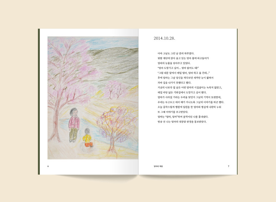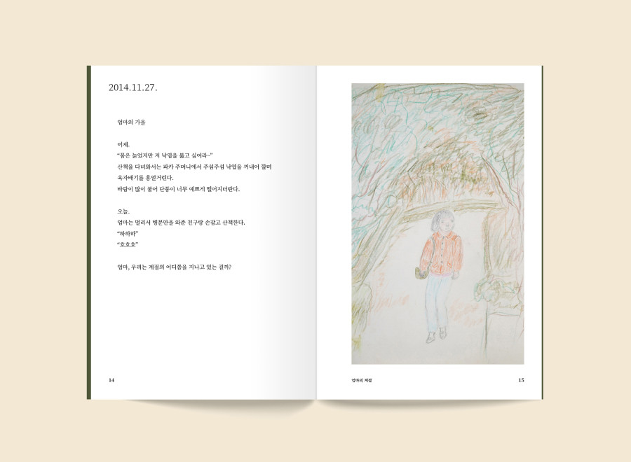 작가가 어머니의 대장암을 선고받은 2014년 10월 28일부터 세상을 떠난 2017년 6월 2일까지 간병일기를 쓰는 동안, 어머니는 "메모지에, 버려진 편지봉투에" 그림을 그렸습니다.
