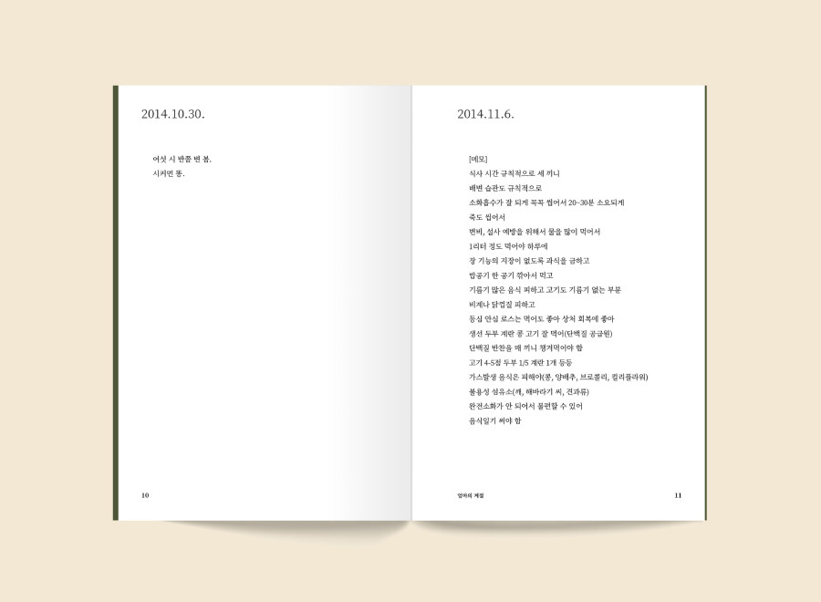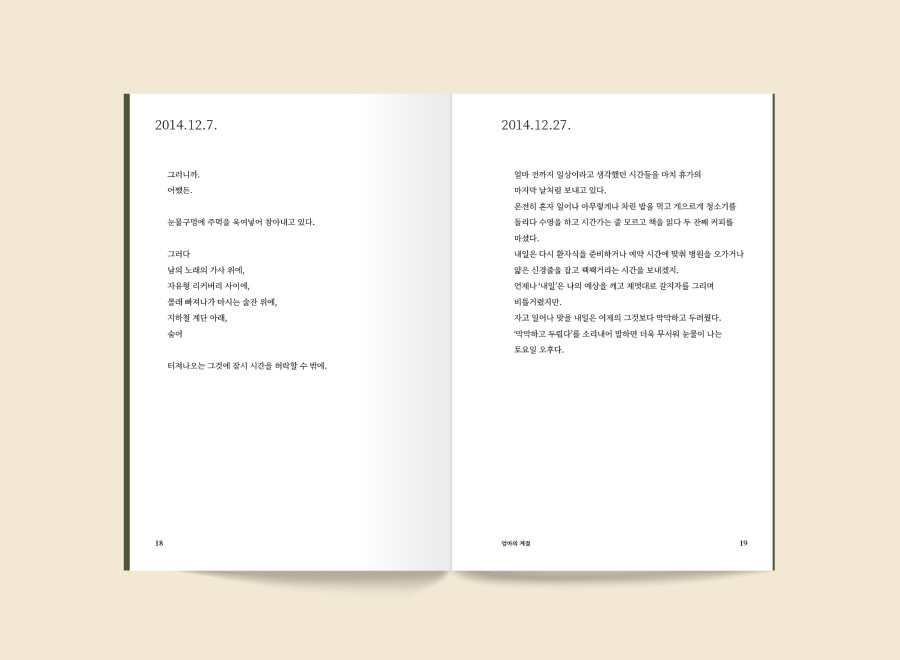 시처럼 짧게 적힌 67편의 일기 행간에는 미처 문자로 설명할 수 없는 진한 감정들이 고스란히 배어 있습니다.