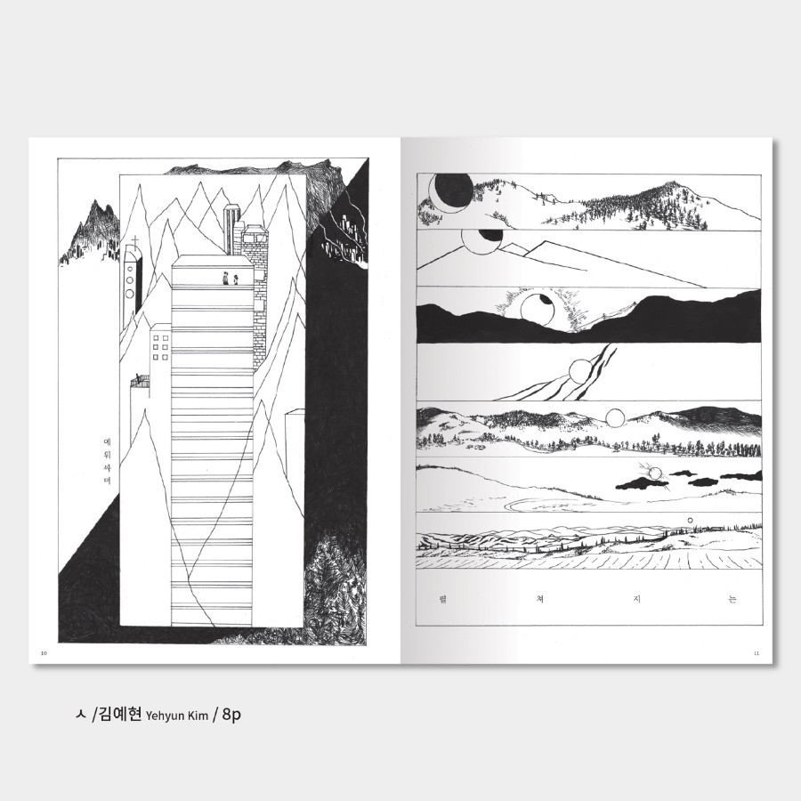 각 단편의 마지막 장에는 표현한 감각을 간단한 텍스트로 기재하였습니다. 표지는 '류수현' 작가 그림으로 디자인 되었습니다.
