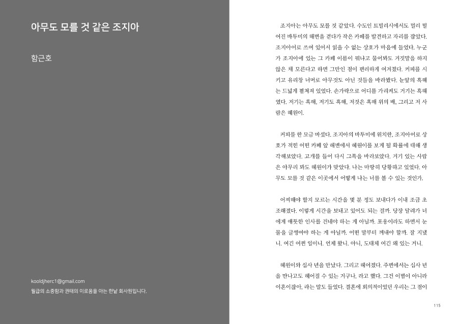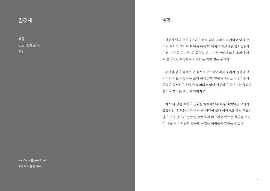 내용: 시, 소설(초단편소설, 단편소설, 장르소설, 장편연재소설), 에세이, 특집(끝)
