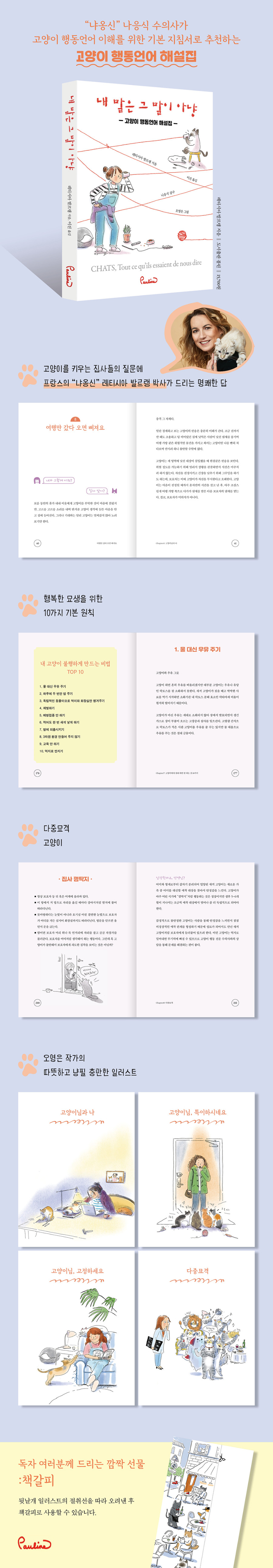 이 책은 발르랭 박사가 고양이 집사들이 가장 많이 하는 오해와 질문 사례를 모아 알기 쉬운 설명에 집사 공감 100% 에피소드를 곁들여 사이다같은 솔루션을 제시하는 고양이 행동언어 이해 기본 지침서다. 고양이의 언어는 해독 불가능한 외계어가 아니라 우리가 제대로 보고 듣기만 한다면 충분히 이해할 수 있다는 사실을 알려준다.