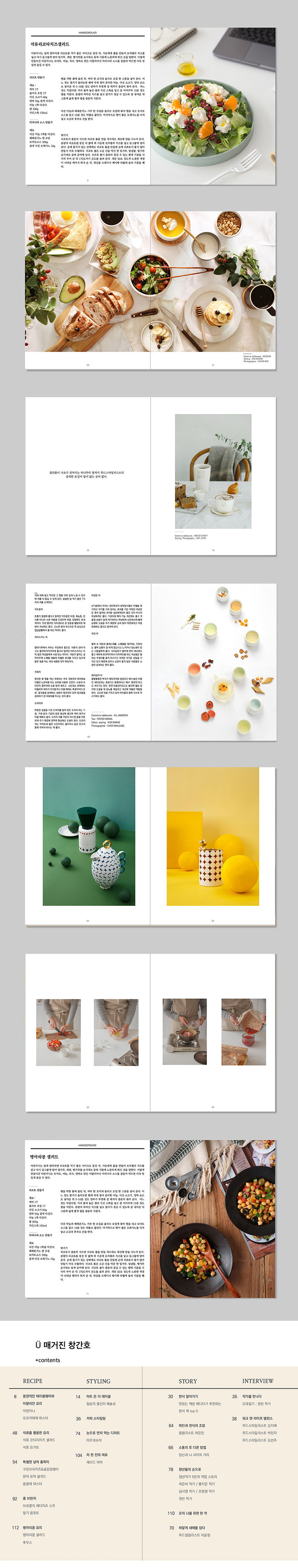 국내에는 너무나 많은 청년 공예작가들이 있습니다. 청년 공예작가들이 만든 훌륭한 테이블웨어가 많지만 대기업의 제품들, 수입제품들에 밀려 공예작가들의 작품을 알리기에는 한계가 있습니다. 대중들에게는 아직은 공예가 생소한 분야이기도 합니다. 쉽게 접할 수 없었던 청년공예가들의 테이블웨어를 활용해 스토리를 담아 다양한 푸드콘텐츠를 만들고 한 권의 매거진으로 완성시켰습니다.