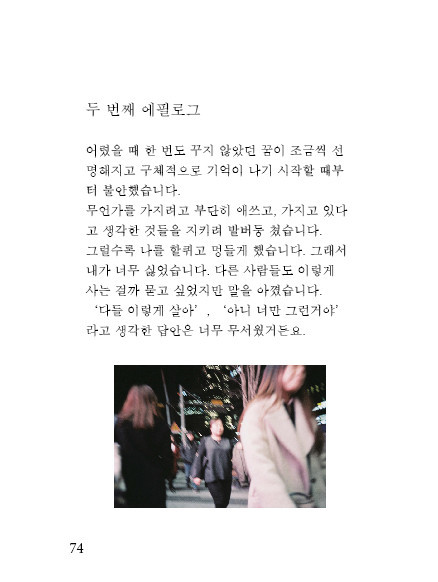 이 책은 꿈을 포기한 후 찾아온 무기력함과 음울로 파도친 스물 일곱의 편린입니다.