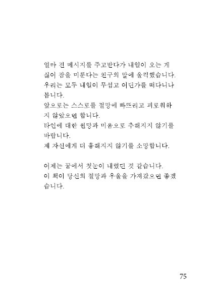 "머리끝까지 이불을 덮고 있다 보면 이 어리석은 시간을 끝내야겠다는 마음이 설지도 몰라