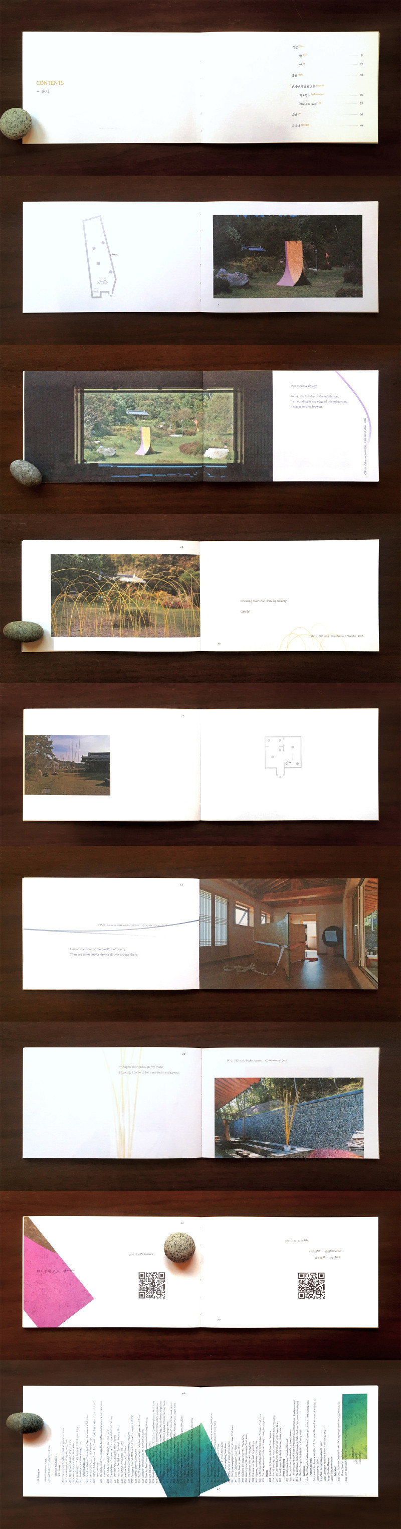이번 전시 도록은 작품 이미지를 비롯 특유의 공간감을 느낄 수 있는 현장과 전시기간 중 진행 된 프로그램(퍼포먼스, 작가와의 대담)을 촬영한 영상을 QR코드로 싣고 작가의 느낀 점을 에필로그로 담아냈다.