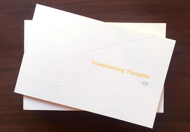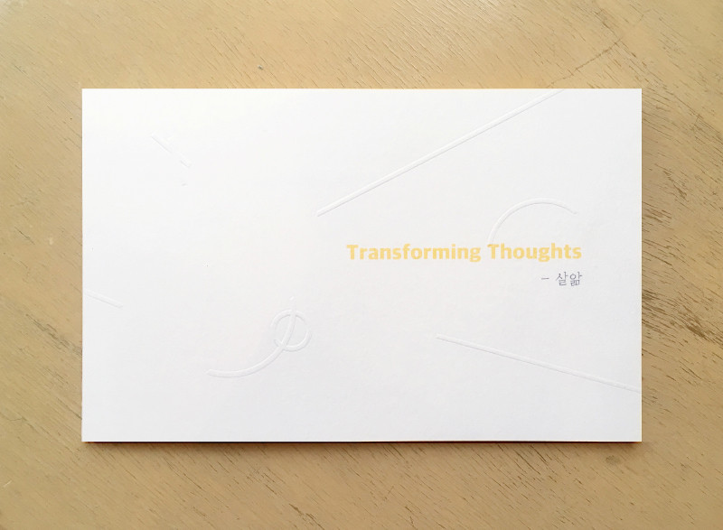 <Transforming Thought-살앎> 전시는 미술관이나 화이트 큐브의 전시장이 아닌 조금은 특별한 공간에서 이루어졌다. 여주 강천면에 있는 여백서원(如白書院)이 그곳이다. 여백서원은 전영애 서울대 독어독문학과 명예교수가 시와 후학을 위하여 만든 곳으로 전통한옥의 모습을 갖추고 있다. 이번 전시에 작가가 내놓은 작업은 벽에 기대어 바닥에 놓여지거나 매달리는 등 일반적인 작품 설치방식을 고수하지 않는다. 그의 신작은 지난 작업에 비해 다소 거칠고 '날것'에 가깝게 제시된다. 또한 지난 연작을 이번 전시를 통해 다시 한 번 소개되는데 이는 전시 공간 속 여러 요소들 과 함께 새로이 의미를 다진다.