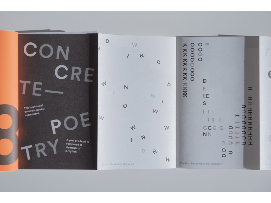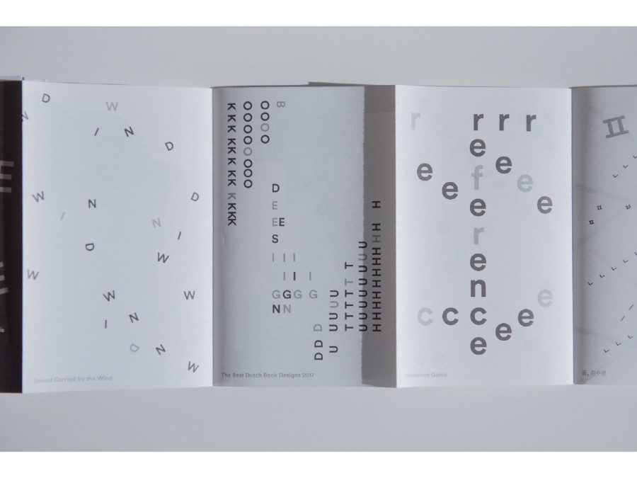총 6개 섹션: Book Rhythm, Concrete-poetry, While flipping through a book, Rest, Movement, Visible Spectrum 으로 이루어져 있습니다.