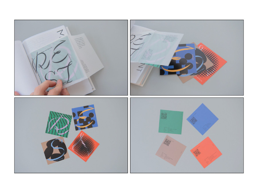 각 섹션은 다양한 음악적 관점으로 만든 시각 결과물을 인쇄한 중철 제본, 아코디언 제본, 낱장, 음악을 듣고 시각 플레이를 해볼 수 있는 링크 카드 등으로 성되어 있습니다.