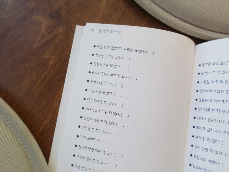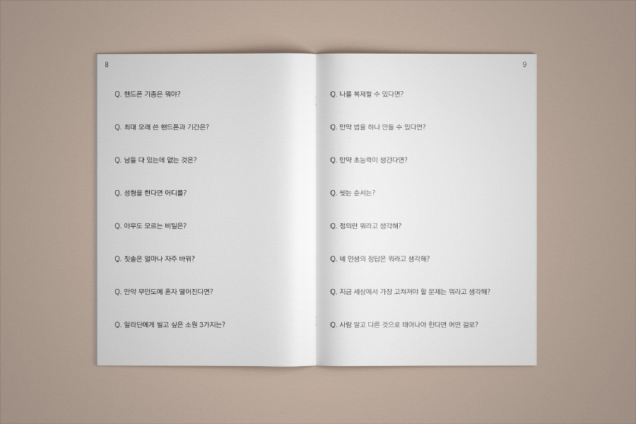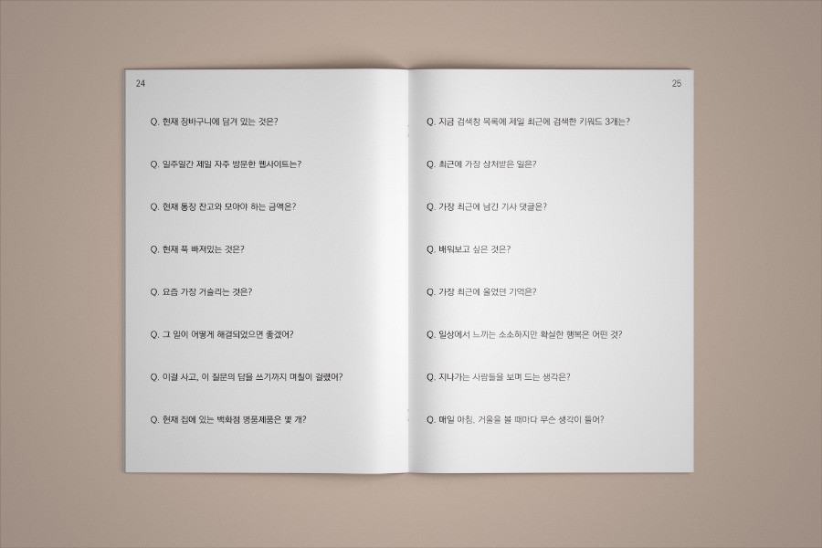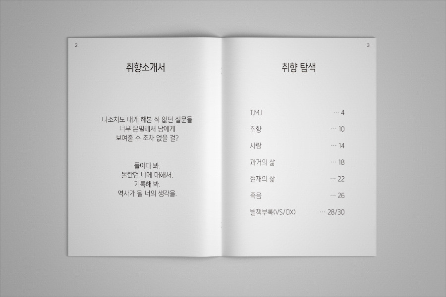 쓰기 전까진 자신조차 제대로 알지 못했던 자신의 취향에 대해 정의해보는 문답집입니다.