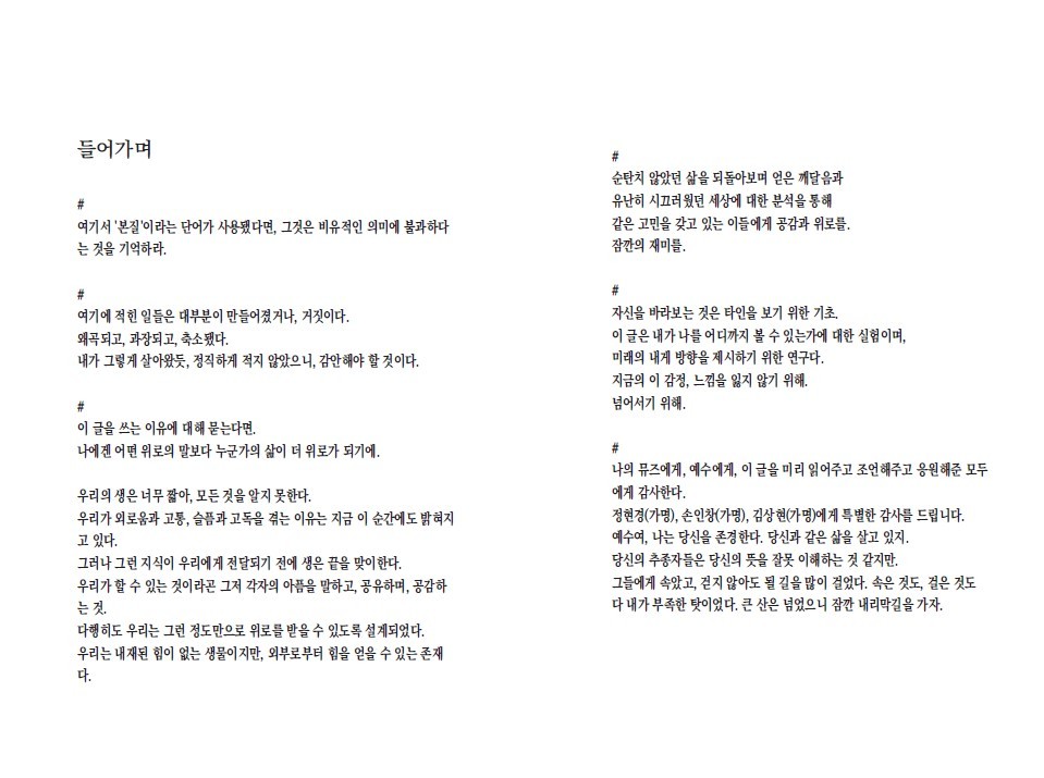 나에겐 어떤 위로의 말보다 누군가의 삶이 더 위로가 되기에"