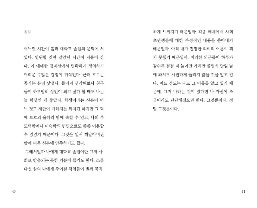 학창시절 내내 국어 과목을 좋아하여 자연스럽게 국어국문학과에 진학했다. 하지만 열아홉 인생의 최종 목표가 '대학교에 합격하기'였던 탓일까. 대학에 들어가자마자 고삐 풀린 망아지처럼 모든 책과 멀어졌다. 스물네 살이 되어서야 자신의 위치를 뼈저리게 깨닫게 되었고, 다시 꿈을 찾기 시작했다.
