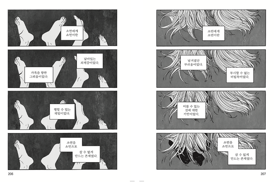 부모님과 소연이는, 쌍둥이 소연이를 두고 떠났다. 누구를 데려가려고 했는지는 중요하지 않았다. 혼자 남은 소연은 홀로 된 삶에 적응해 나갔다. 가족이 없는 소연의 삶은 그 자체로 나쁘지 않았다. 다시 소연이 돌아오기 전까지는 그랬다. 이제 두 소연은 하나의 소연으로 살아야 한다. 독자는 소연과 <소연>, 두 인물에 얽힌 이야기를 함께 풀어나가며 그들의 삶을 들여다봄과 동시에 함께 상상할 수 있을 것이다.