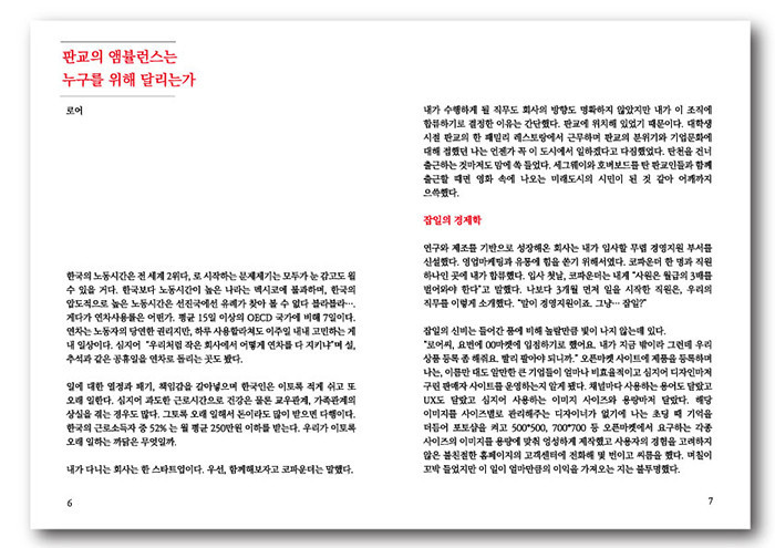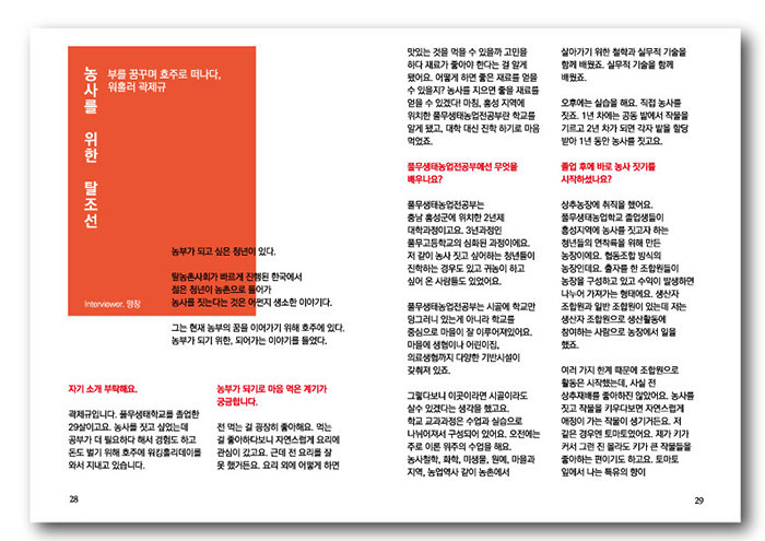 첫 창간호는 매일 ‘퇴사’를 검색하고 ‘꿈’이란 단어에 마음 설레지만 '텅장’에 스치우는 월급과 이력서에 남길 경력 한 줄에 마음은 스산해지는 나와 당신을 위한 책입니다. 스타트업 마케터, 은행원, 기획자, 여행사 직원, 농부… 다양한 직업을 가진 이들에게 ‘정말 다들 이렇게 사는 것이냐’고 물었습니다.