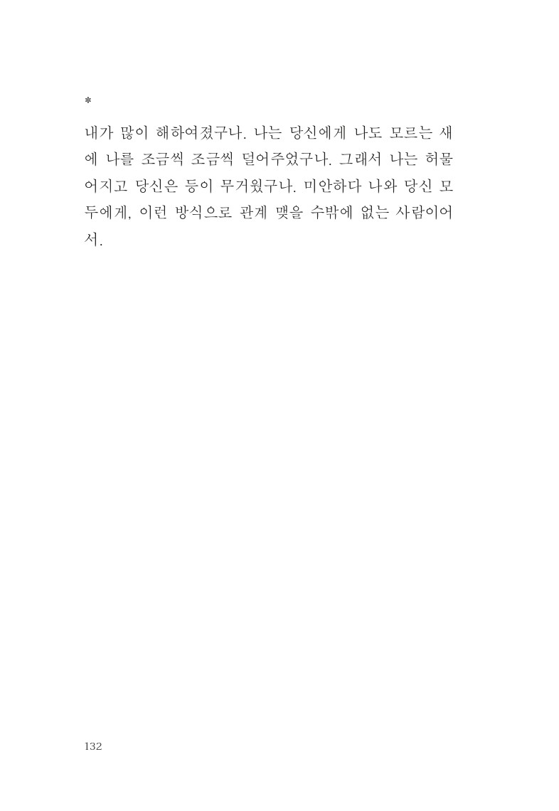 내가 견딜 수 있는 것보다 더 세계가 폭력적이라고 느끼는 날들엔 사람에게 기대었습니다. 나를 온전히 기대어 눈물을 쏟고 위안을 얻은 날들도 있었지만, 기댈 사람이 없는 날도, 기대었던 사람이 나를 떠밀었던 날도 있었습니다.