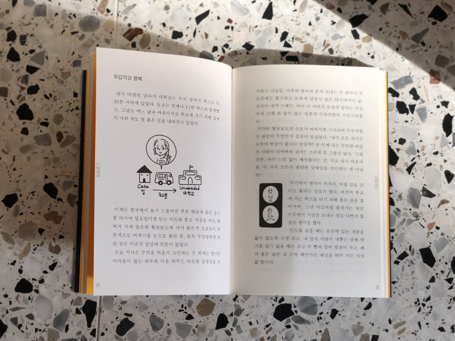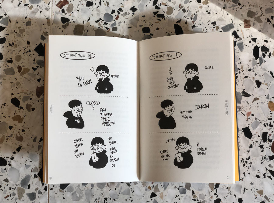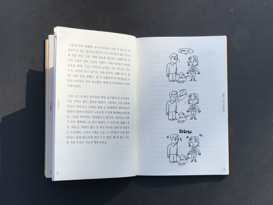 그래서 이 책에 취업, 졸업, 우울, 사람들과의 인연, 이방인으로서의 해외 생활, 낮은 자존감 등등 저희 또래들이 한 번쯤은 고민해봤을 것들을 글과 만화로 녹여내었고, 꼼꼼하게 다듬었습니다.