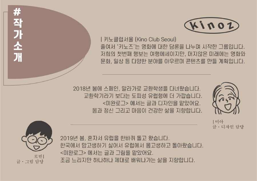 <미완로그>는 미아와 로빈이 각각 교환학생과 여행객으로 유럽을 여행하고 살며 느꼈던 생각과 일화들을 모아 담은 에세이 입니다. 저희는 꽉 막힌 취업난과 자꾸 스펙과 경력 등, 완성된 인재들만 요구하는 사회 속에서 방황하는 젊은 독자들이 공감할 수 있는 책을 만들고 싶었습니다.