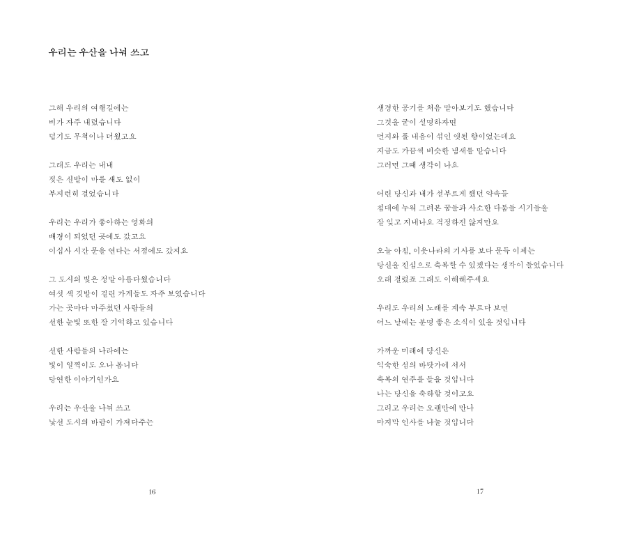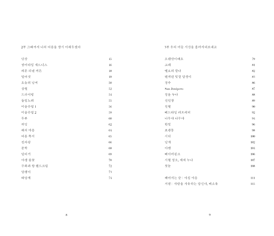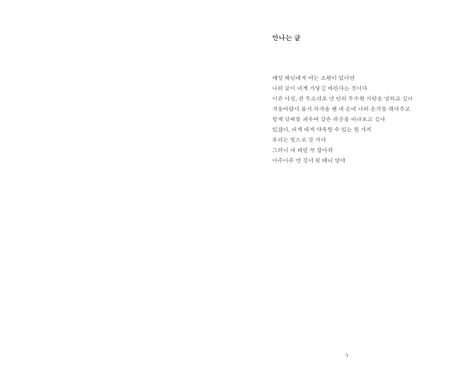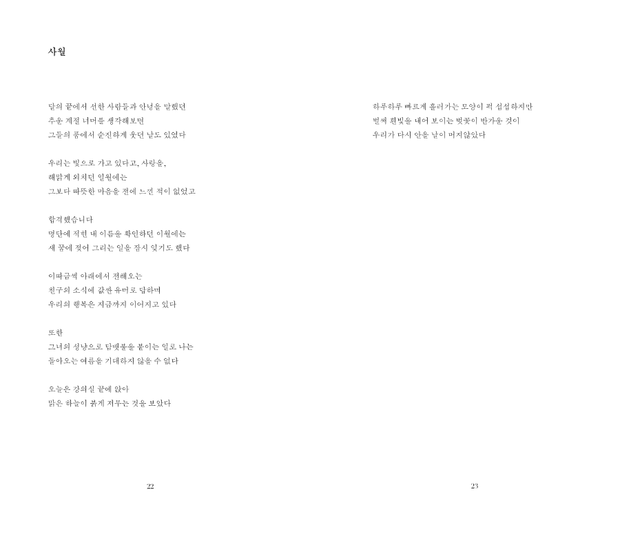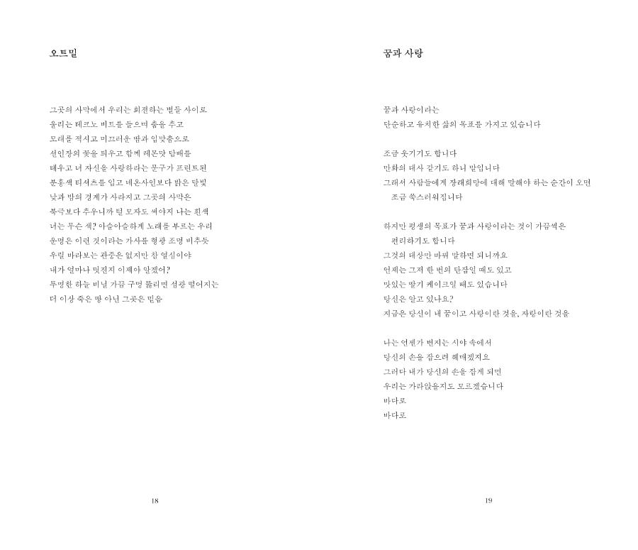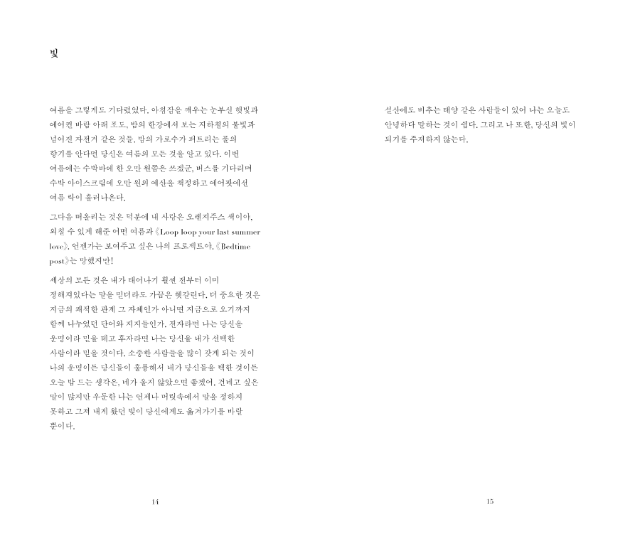 2019년 WAYSOFSEEING에서 첫 개인전 <Baby, We’re Driving to the Light!>을 열었고 같은 해 11월, 첫 시집 <사랑해 마지않는 그대야>를 선보이게 되었다.