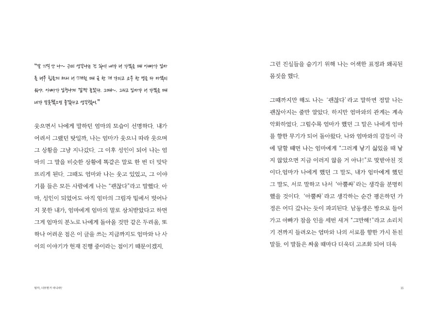 그러자 깊은 마음속 말들이 떠올랐습니다. 그건 바로 엄마에 대한 이야기였습니다.