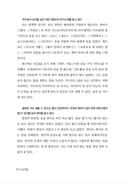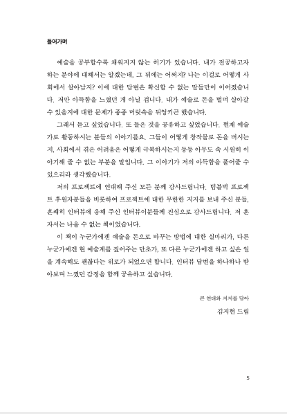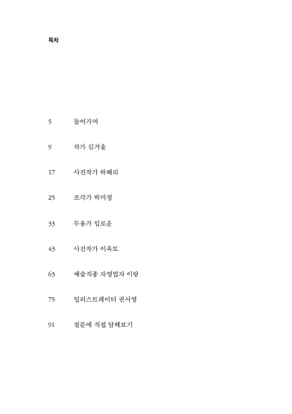 해당 도서에는 작가 김겨울, 예술직종 자영업자 이랑, 사진작가 하혜리, 사진작가 이옥토, 일러스트레이터 권서영, 무용가 임로운, 조각가 박미정이 참여했다.