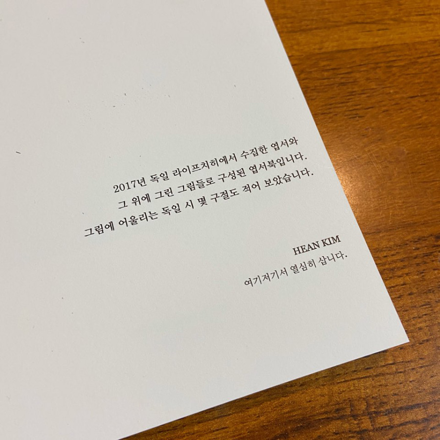 2017년 독일 라이프치히에서 수집한 엽서와 그 위에 그린 그림들로 구성된 엽서북입니다.