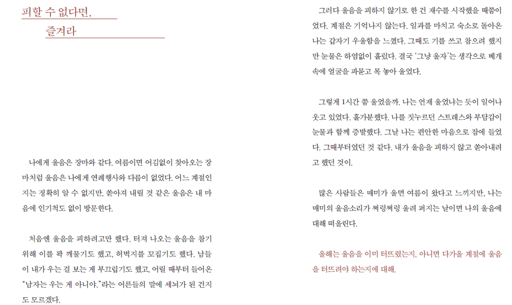 힘든 시기에 책을 읽으며 '사는 건 다 똑같구나'하는 공감과 위로를 받고 힘을 냈습니다. 책을 내겠다고 시작한 건 아니었는데 하루하루의 기록들은 책이 됐습니다. 서른이 되고 싶지 않았는데 하루하루 살다보니 서른이 된 것 처럼요. 물론 제 책에는 따뜻함이나 다정함은 없을지 모르겠습니다. 그러나 지극히 평범한 한 사람의 삶을 통해 어딘가에서 힘들어하고 있을 누군가에게는 공감과 위로가 전달되기를 바랐습니다.