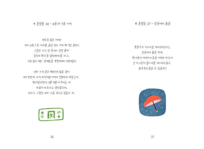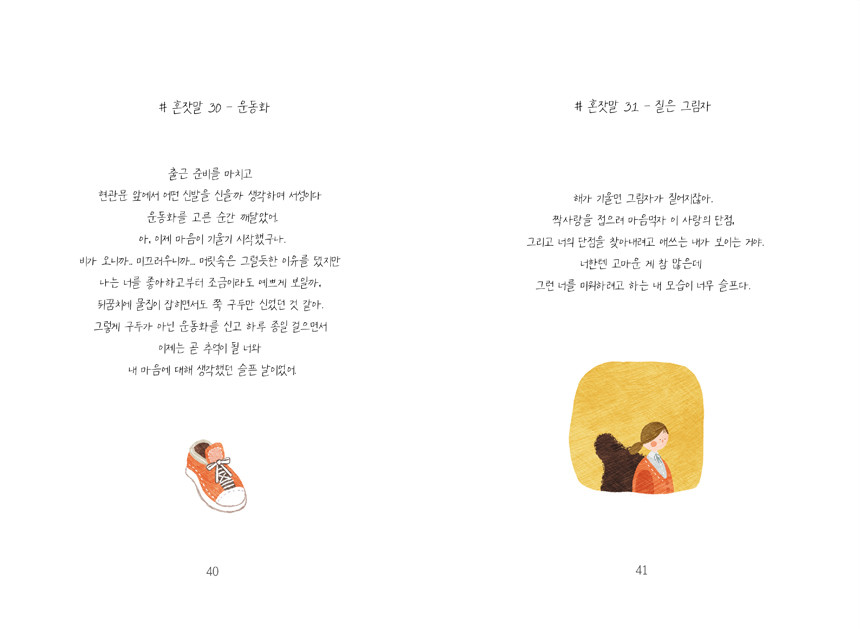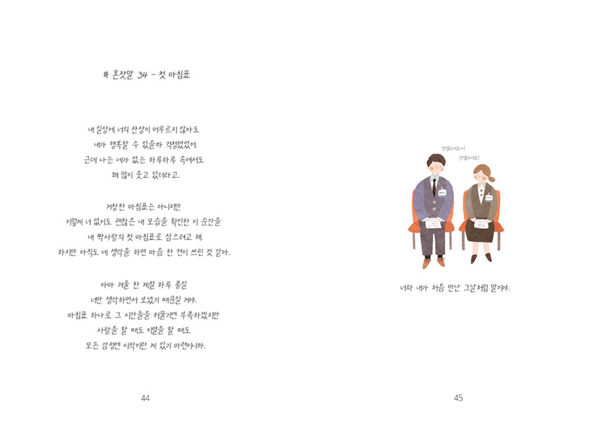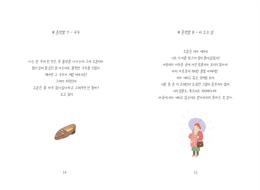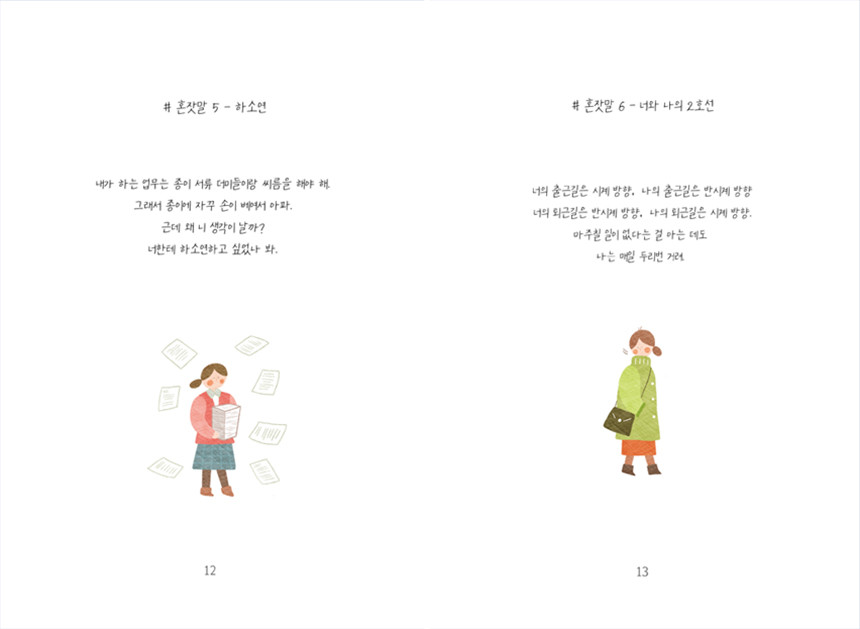 그 사람을 향한 전하지 않은 혼잣말들을 하루하루 모아 자그마한 그림과 함께 한 권의 책에 담았습니다.