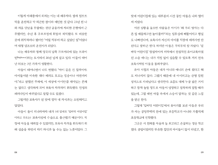 이 책은 영국에서 아이를 키우며 살아가는 동양계 이민자의 눈으로 영국사회의 이면을 차분하 게 관찰한다. 복지국가와 다문화 사회의 이상이 무너지고 인종차별, 빈부 격차, 성소수자 문제 등의 난제들로 신음하는 영국 사회는 한국 사회의 가까운 미래일지도 모른다. 그래서 저자의 이야기가 더 실감 나고 마음에 와닿지만, 그래서 정신이 번쩍 들기도 한다. _홍성수 (숙명여대 법학부 교수, 『말이 칼이 될 때』 저자)