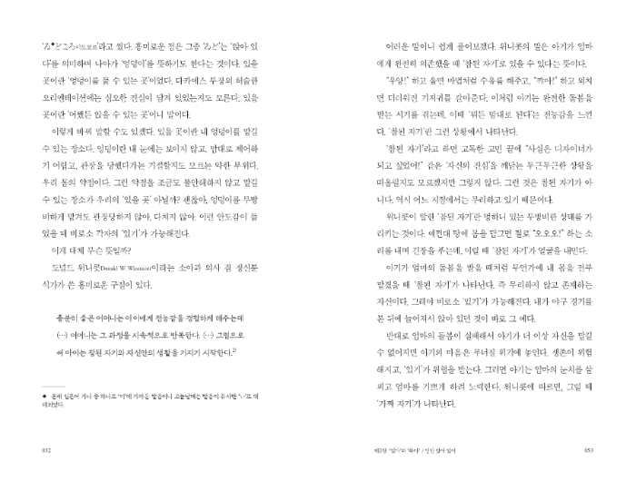 이 책에서는 시종일관 치료와 돌봄이 대비된다. 치료란 단순히 병원에서 의사와 환자 사이에 이뤄지는 행위가 아니라 우리 삶의 자립, 성장, 생산, 나아감 등을 의미한다. 그에 비해 돌봄은 의존, 안정, 보호, 머무름 등과 관련 있다. 현대 사회는 돌봄보다 치료를 우월하게 여긴다. 수술을 하는 의사와 입원 생활을 돕는 간병인에 대한 대우를 비교하면 명백히 알 수 있다. 하지만 저자는 돌봄 시설에서의 경험을 통해 삶을 가장 밑바닥에서 지켜주는 것은 바로 ‘돌봄’이라는 깨달음을 얻는다.